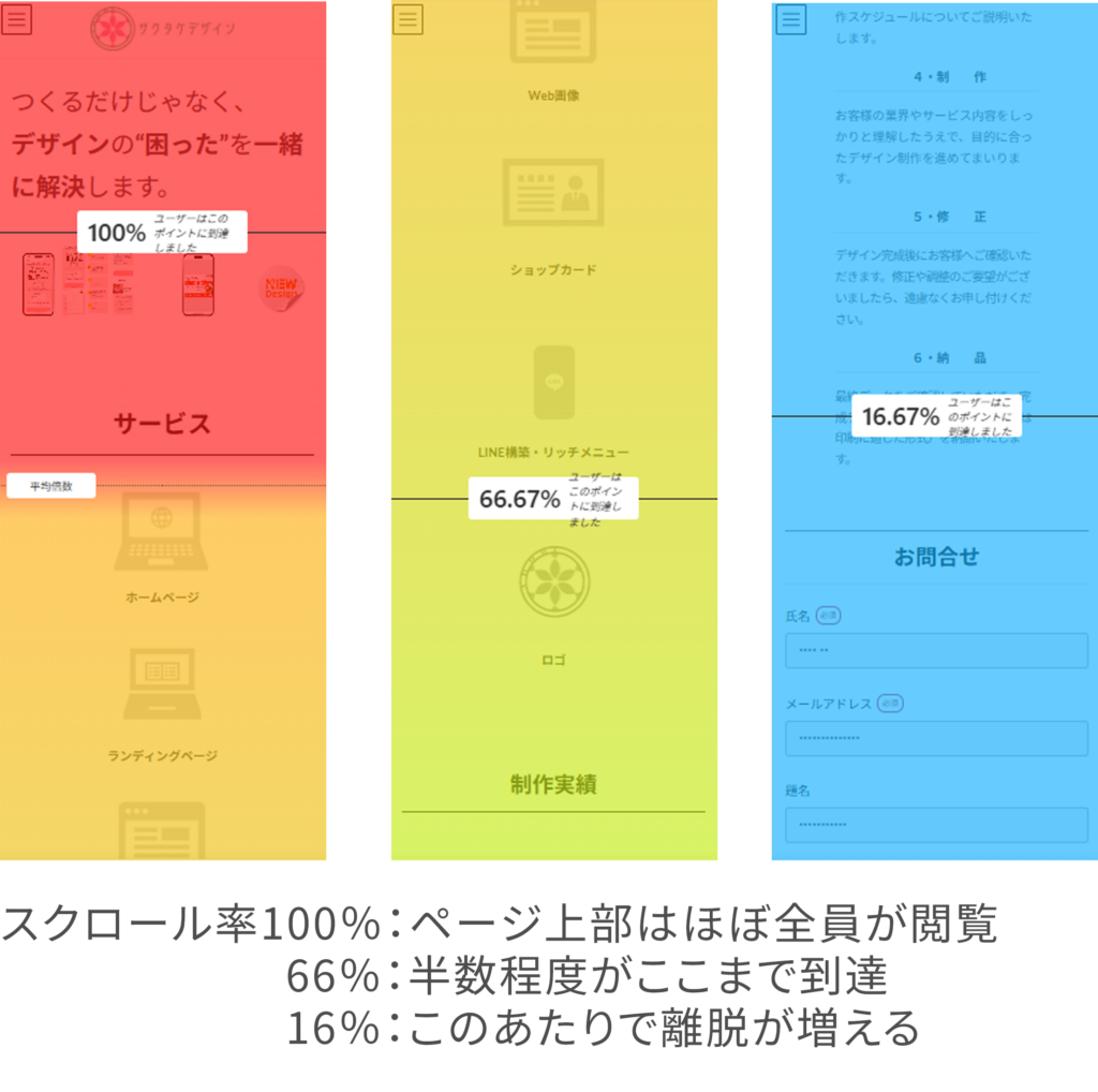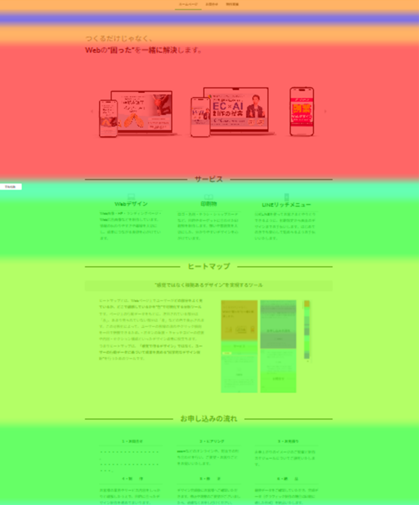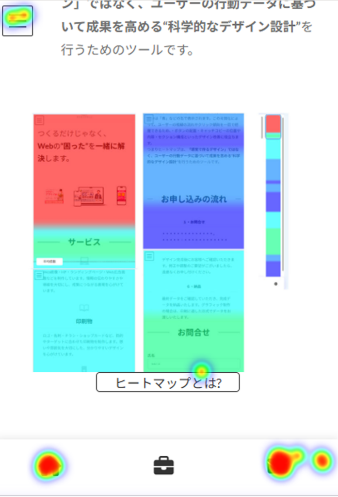ユーザーが「どこを見ているのか」「どこで離脱しているのか」といった行動を、視覚的に把握することができます。